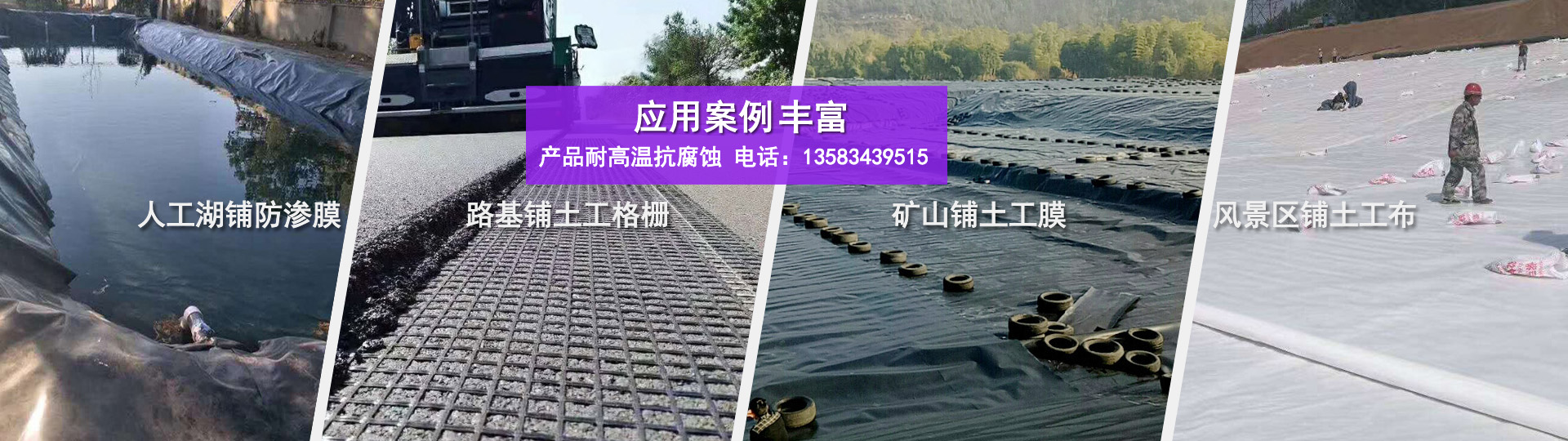產(chǎn)品廣泛用于: 1.環(huán)保環(huán)衛(wèi)工程(如生活垃圾填埋場(chǎng)防滲、污水處理廠、有毒有害物質(zhì)填埋場(chǎng)、危險(xiǎn)品倉(cāng)庫(kù)、廠房等) 2.水利土木工程(河、湖、水庫(kù)、堤壩、堵漏、加固、水渠防滲、護(hù)坡等) 3.市政工程(地鐵、建筑物的地下工程和屋頂蓄水池、屋頂花園防滲、污水管道內(nèi)襯等) 4.園林綠化(人工湖、池塘、高爾夫球場(chǎng)的水塘底襯、護(hù)坡等) 5.石化(化工廠、煉油廠儲(chǔ)油池防滲防污、化學(xué)反應(yīng)池、沉淀池的內(nèi)襯、二次襯層、藥廠基建防滲與隔離) 6.礦業(yè)(洗選池、堆浸池、堆灰場(chǎng)、尾礦壩防滲防污等) 7.交通設(shè)施工(公路的基礎(chǔ)加固、涵洞的防滲) 8.農(nóng)業(yè)(水庫(kù)、飲用水池、蓄水池防滲、灌溉系統(tǒng)的防滲) 9.水產(chǎn)養(yǎng)殖業(yè)(魚(yú)塘、蝦池的內(nèi)襯等)